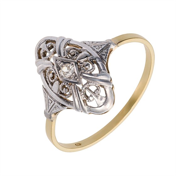 142. Zlatý prvorepublikový prsten s přírodním diamantem