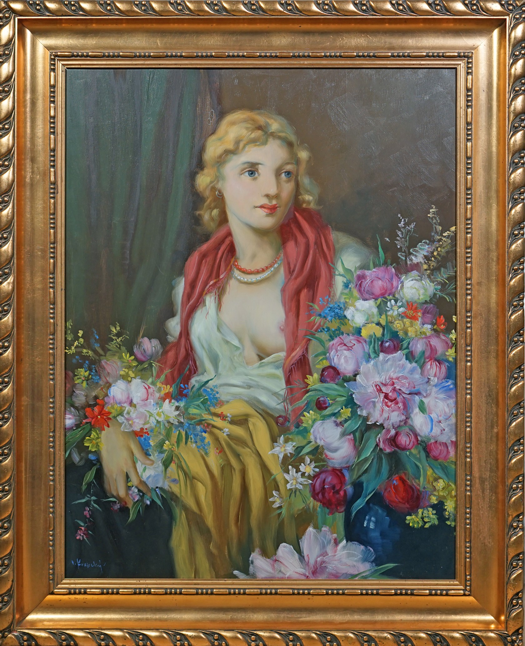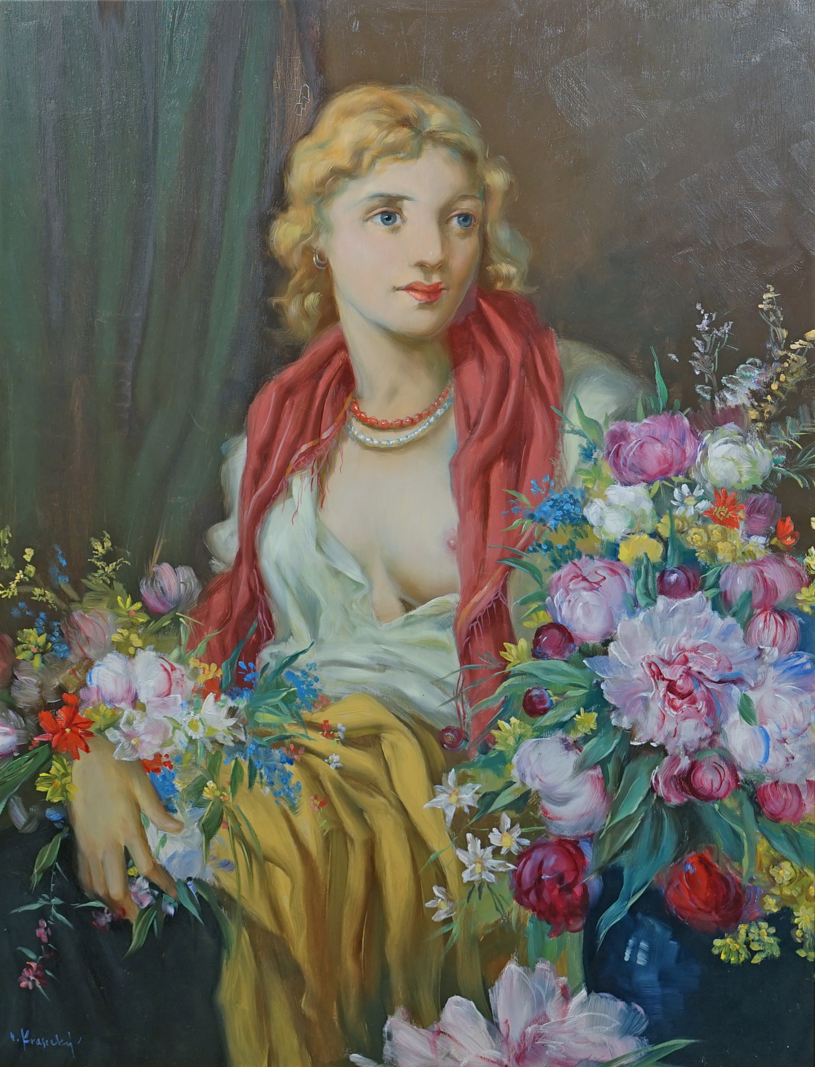 33. Odhalená dívka s květy - Velký formát