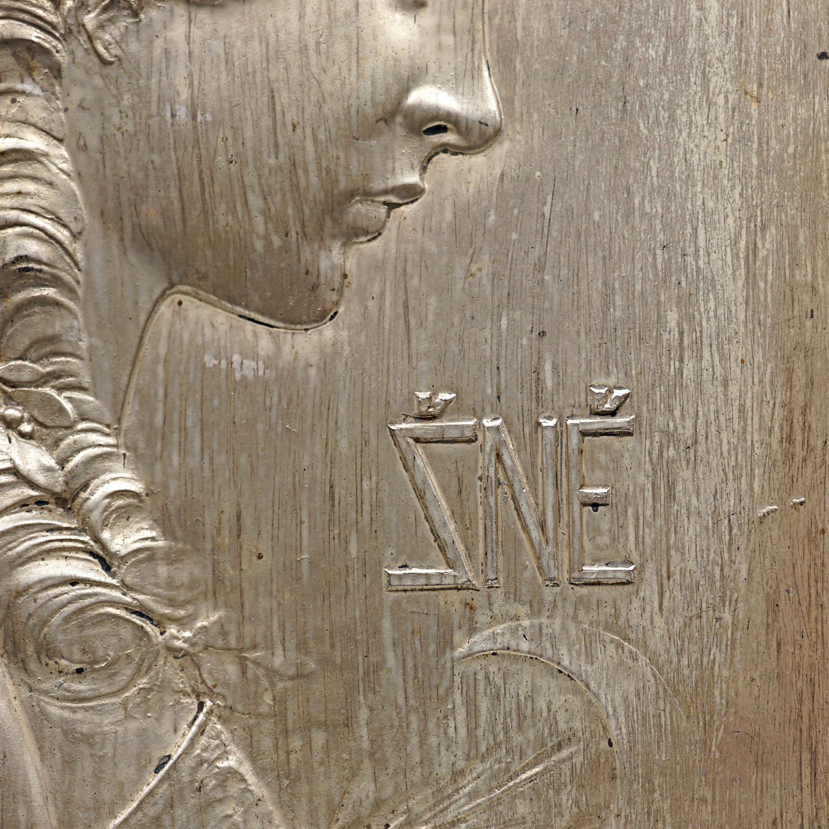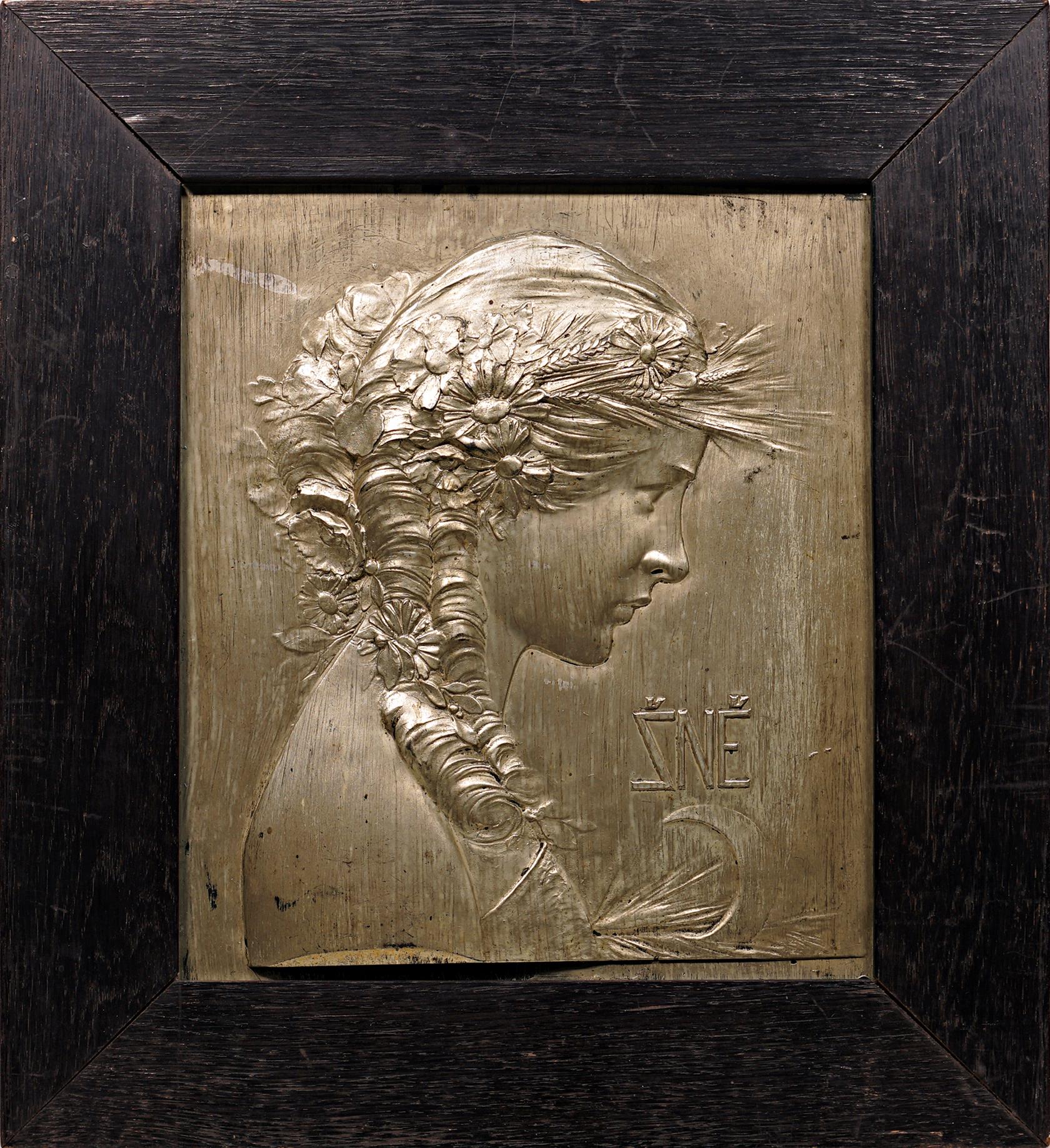 Kovový obraz, dřevěný rám, místy podřeno.