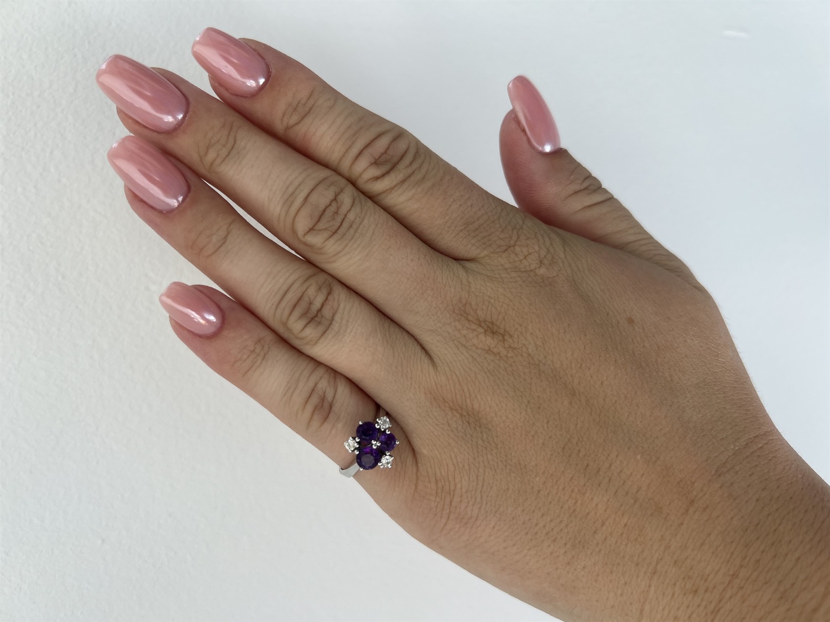 124. Zlatý prsten s přírodními ametysty a diamanty