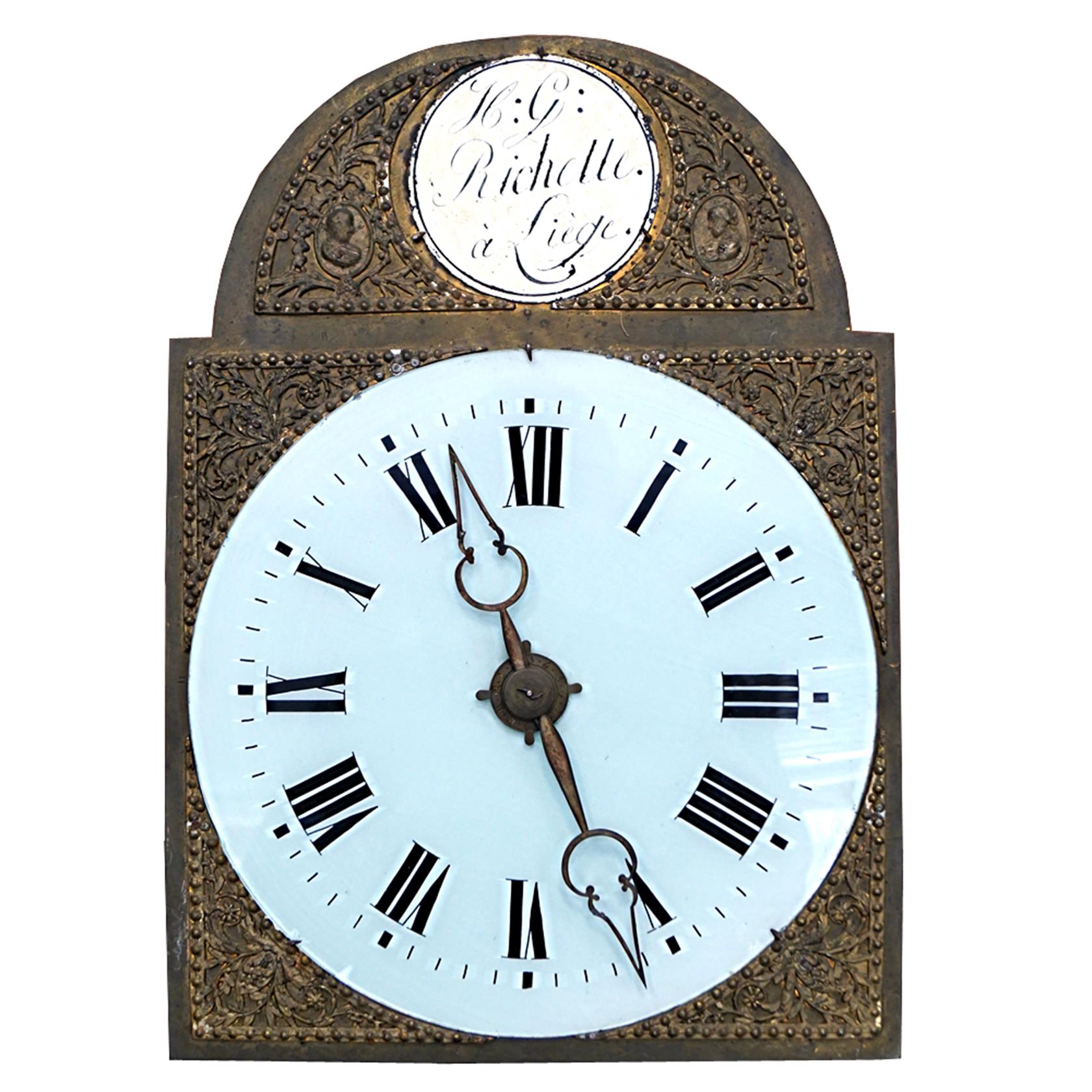 Podlahové hodiny kolem roku 1800. Bití půlové, s budíkem. Výroba Belgie. Funkční. Značeno hodinářem K.G. Richelle Liege.