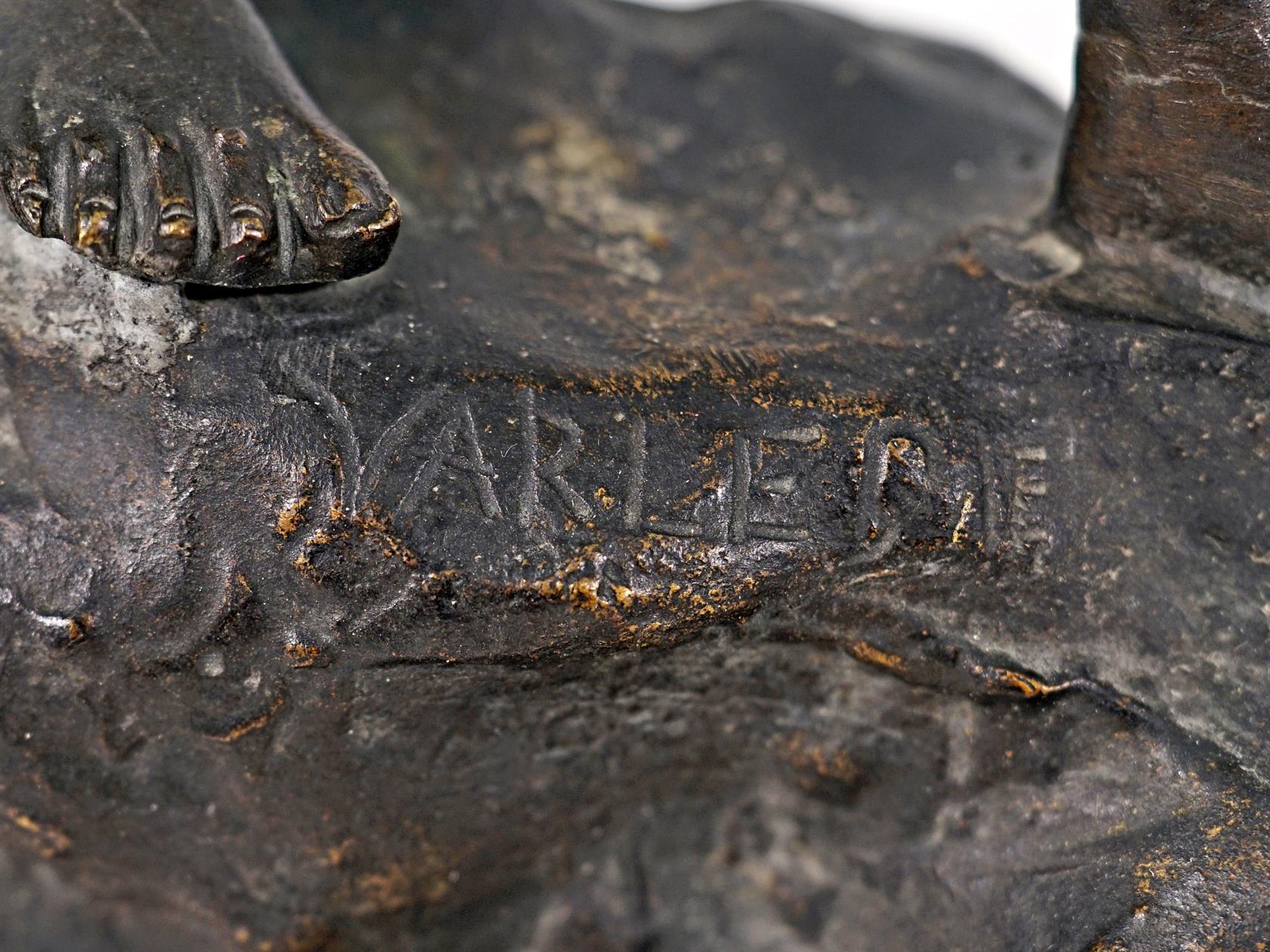 Bronz, kamenný podstavec, signováno, stáří cca r. 1900.