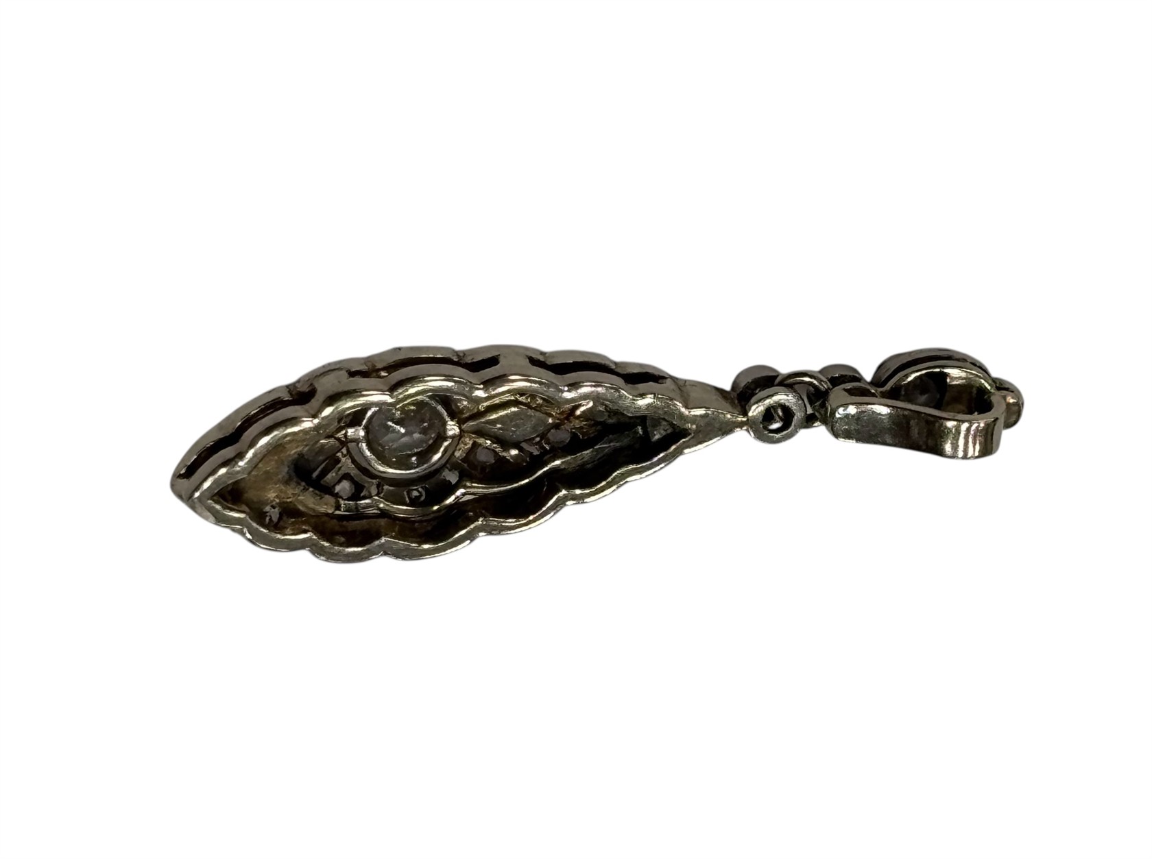 Krásná stará práce. Přívěs osazen brilianty o velikosti 0,10 ct a 0,05 ct + routy a safírky.