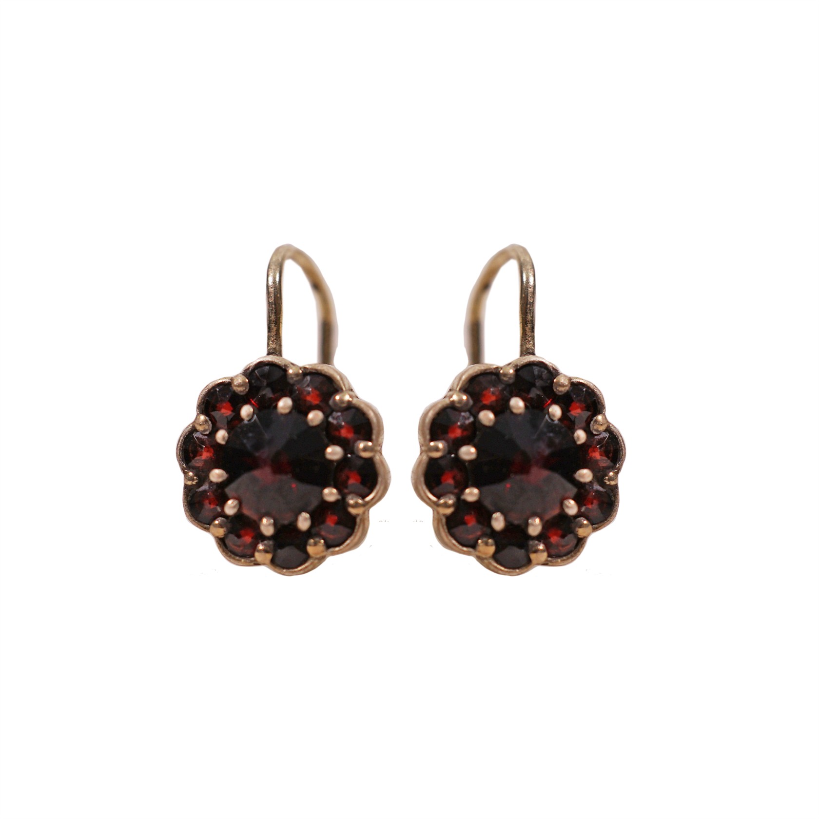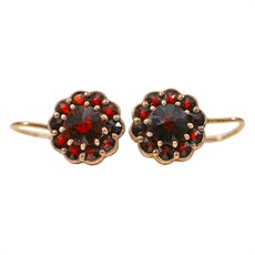 Zlacené stříbro, osazeno českými granáty. Váha 2,84 / 800. Puncováno starými puncy. Zapínání pevné.