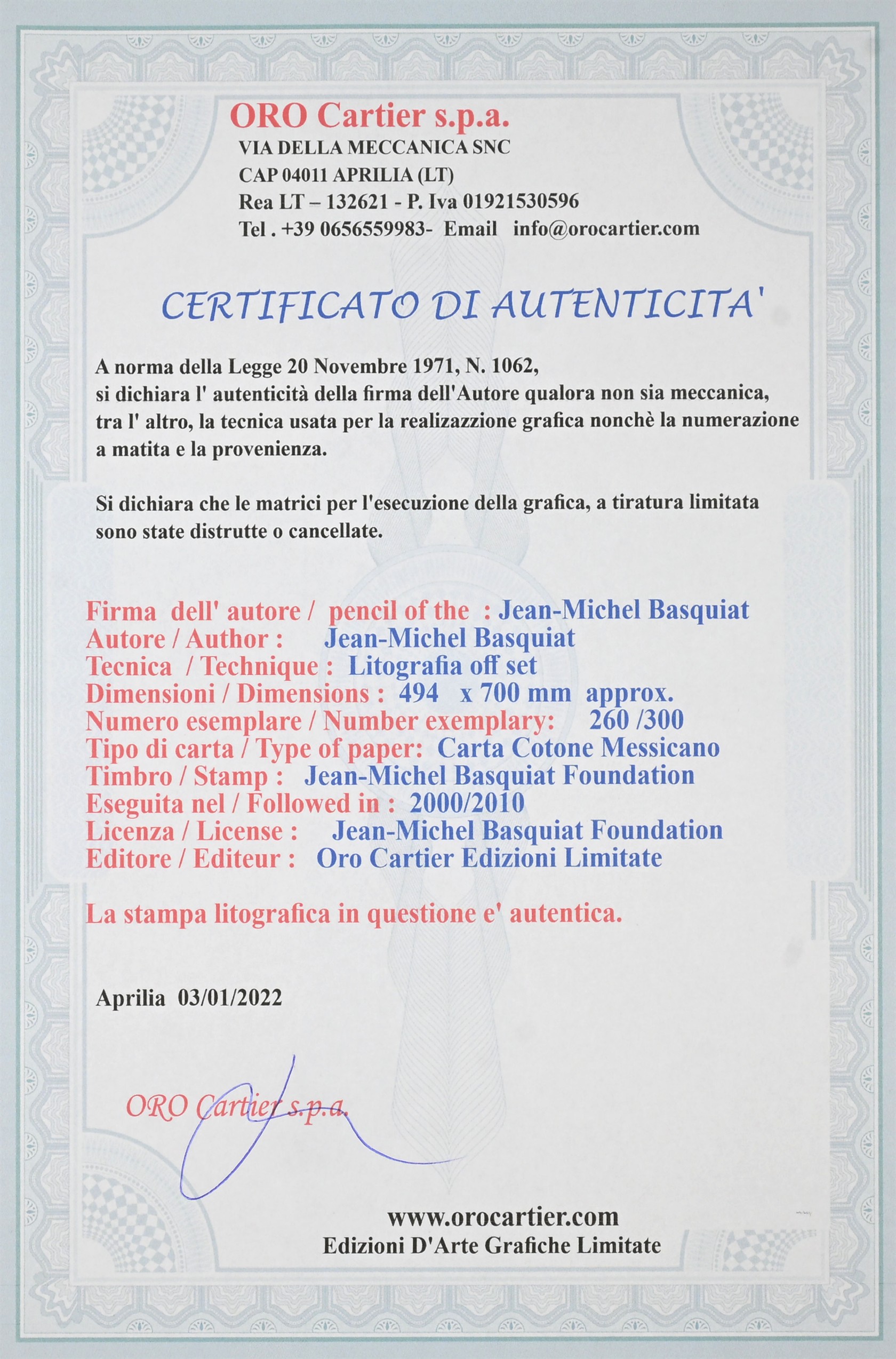 Číslovano tužkou 260/000