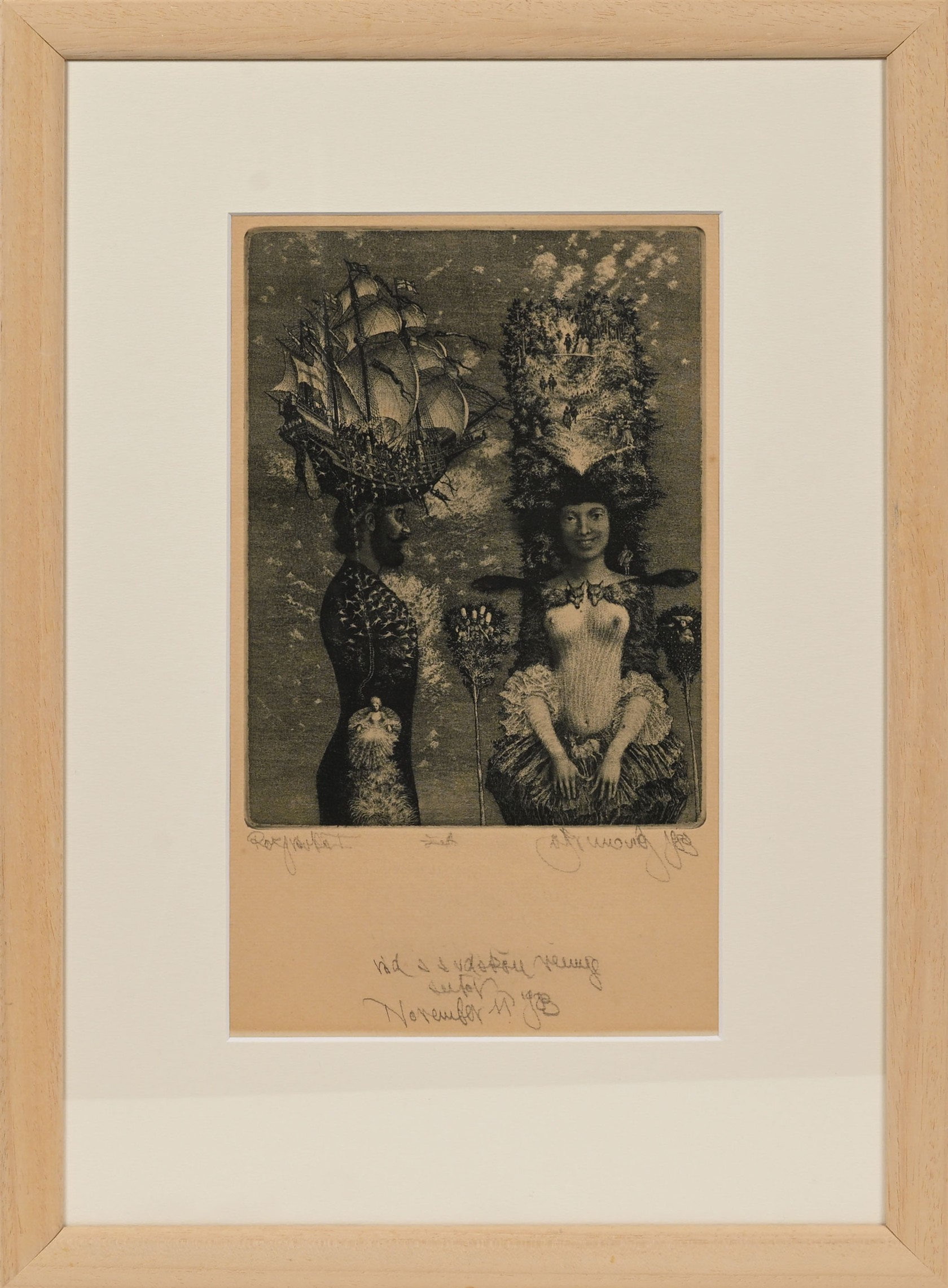 Výška: 21 cm, šířka: 15,5 cm, rámování: 46 x 32,7 cm