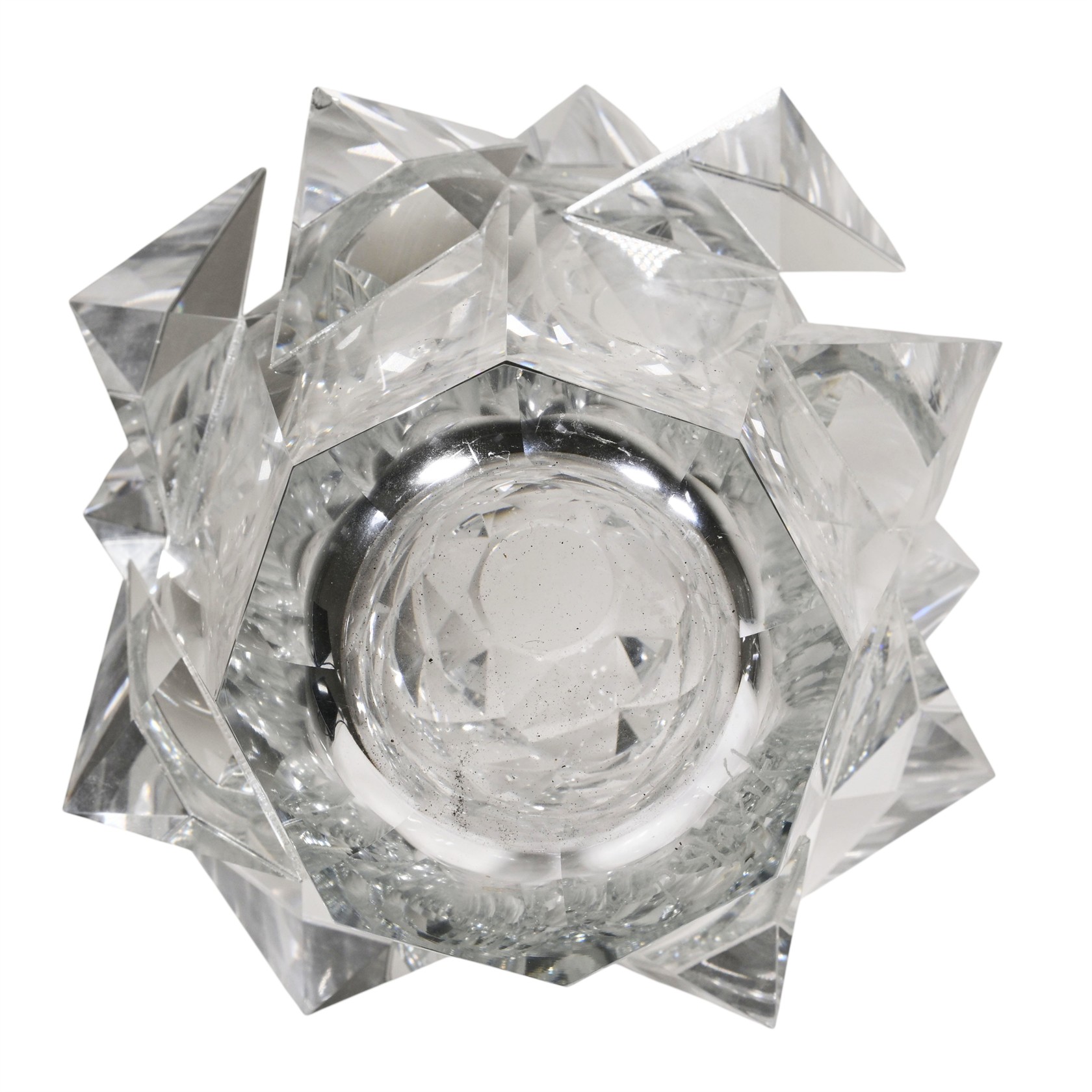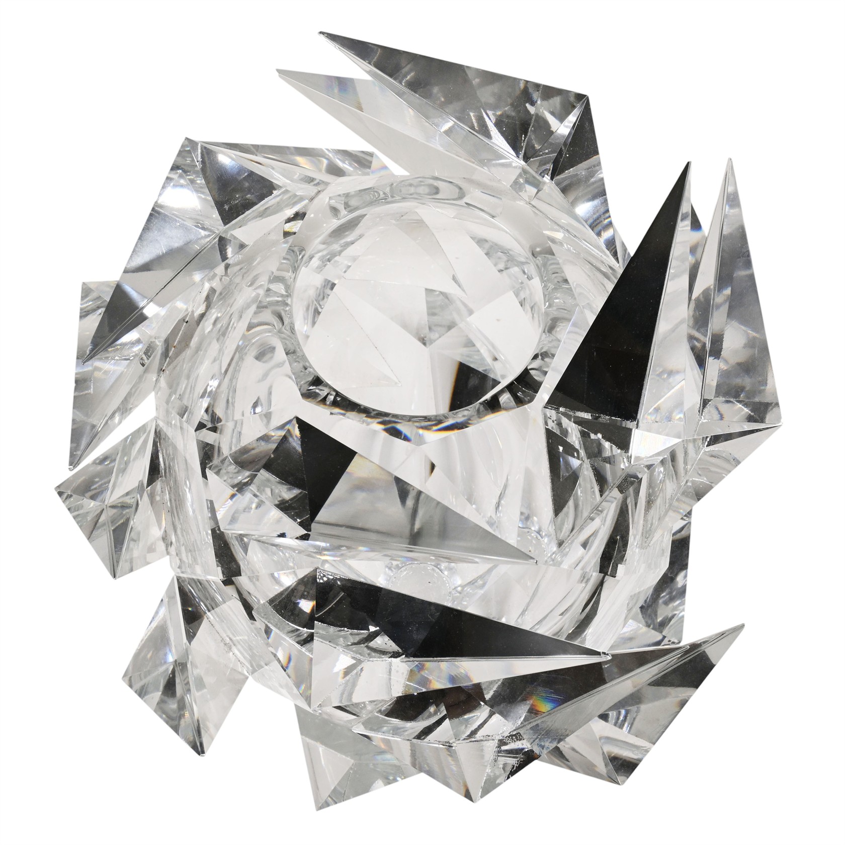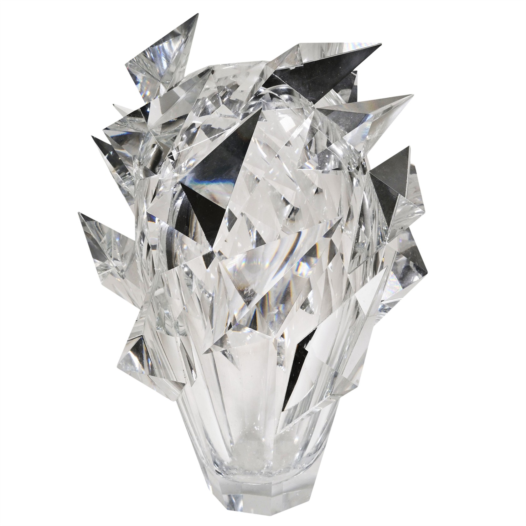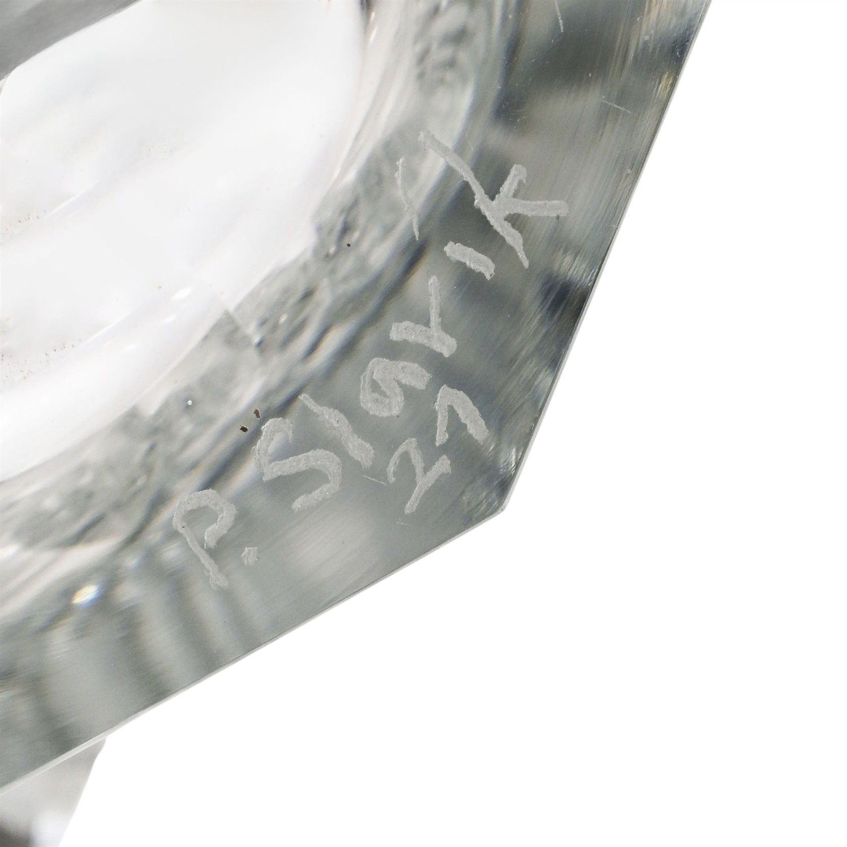 Sklo, broušené | výška 33 cm, šířka 26 cm | masivní váza | signováno, datováno 21 | nepoškozeno