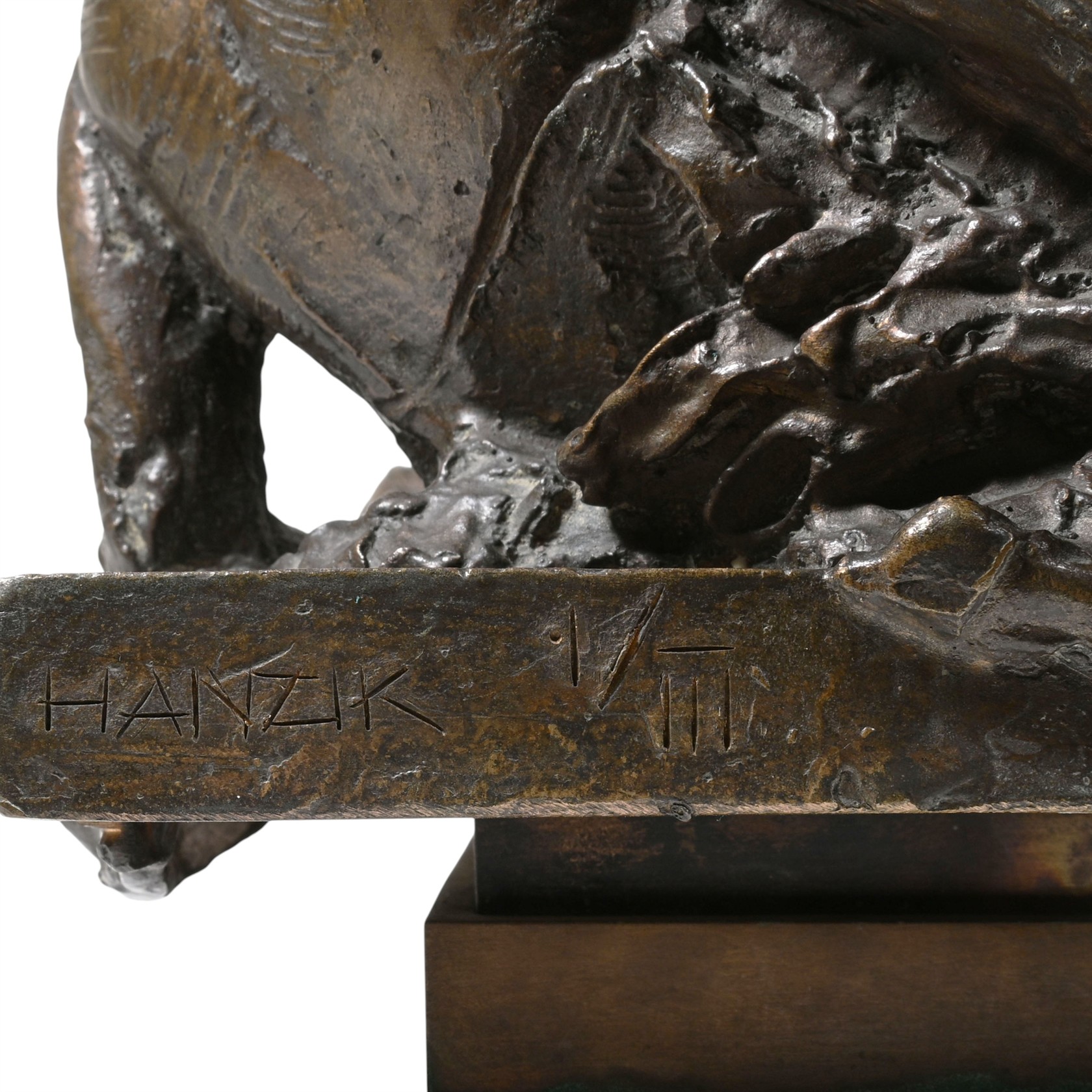 Bronz | výška 22 cm, šířka 41 cm, hloubka 26 cm | signováno Hanzík | původní starý odlitek | výborný stav