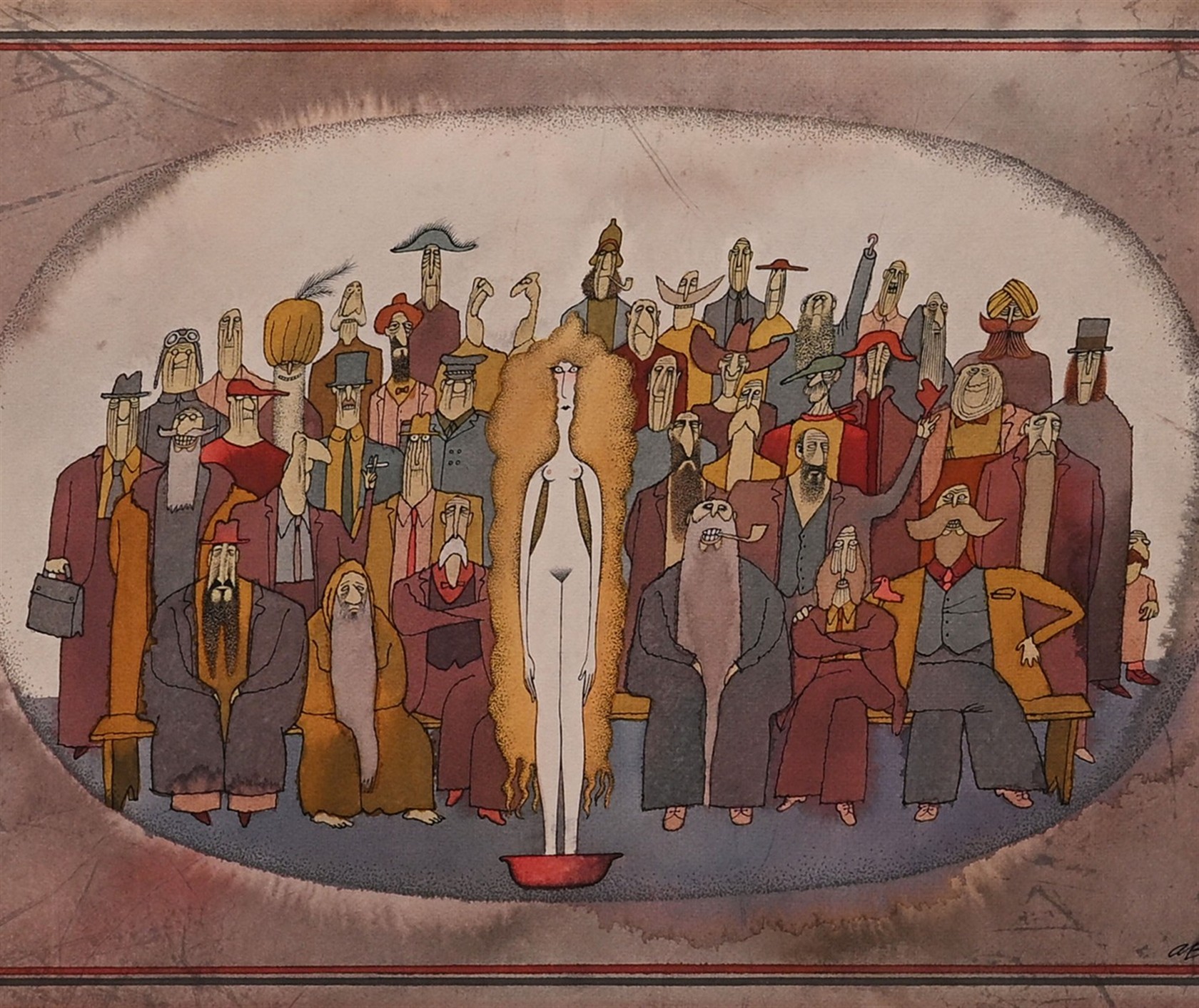 Signováno PD, akvarel, kresba tuší.
