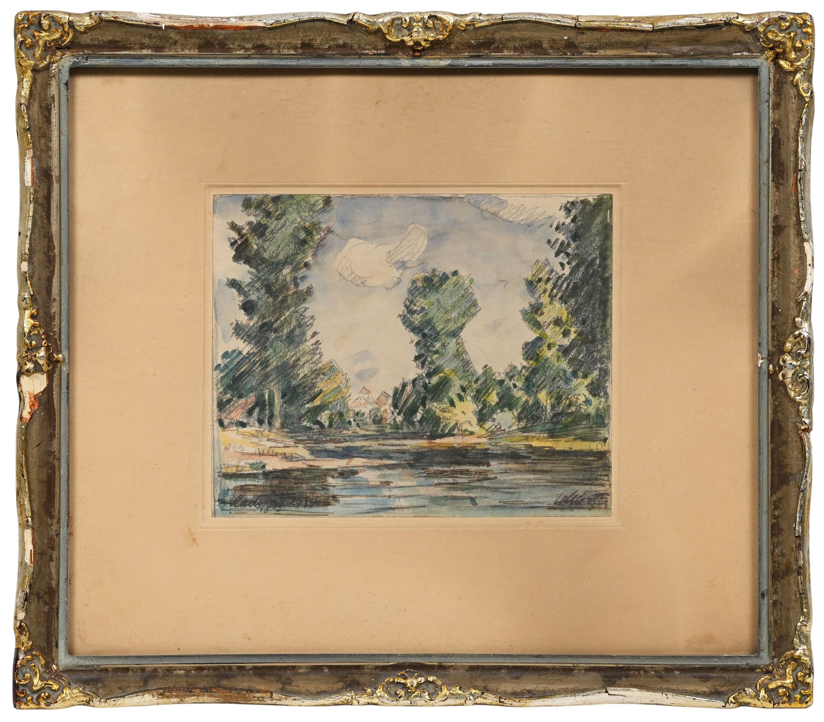 Signováno PD, na paspartě místy fleky.